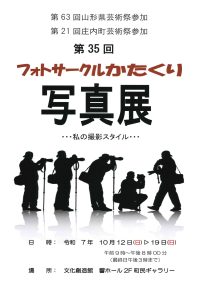 第21回庄内町芸術祭・令和7年度県民芸術祭参加事業 日時:2025年10月12日(日)9時00分 ~ 10月19日(日)15時00分 ●会場:2階 町民ギャラリー ●入場料:無料 ●出展:フォトサークルかたくり